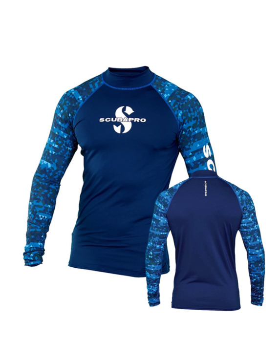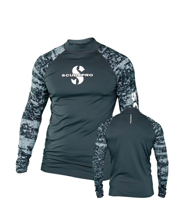 這件達到UPF 50的衣物可以阻擋98%的紫外線輻射。 UPF 50等級或以上被認為是屬於優秀的保護等級。 流行的款式能為你的潛水提供保護同時增添舒適性,由高品質的聚酯纖維材料製成,合身且速乾。