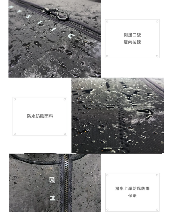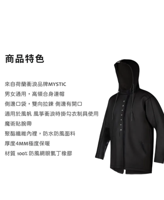 來自荷蘭衝浪品牌 側邊口袋、雙向拉鍊 魔術貼腕帶、厚度4mm極度保暖 聚脂纖維內裡,防水防風面料